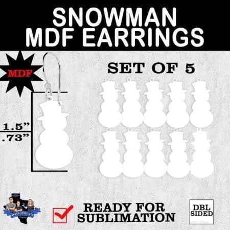 SNOWMAN MDF EARRINGS (SET OF 5) – BLANK FOR SUBLIMATION