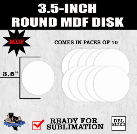 Introducing our 3.5-inch round sublimation MDF disk. Available in packs of 10! Made from high-quality 3mm thick MDF (Medium-Density Fiberboard), this disk is perfect for your sublimation printing needs.