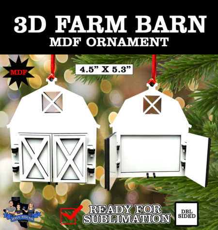 Introducing our 3D FARM BARM MDF Ornament (In House Laser Cut), the perfect blank canvas for sublimation printers looking to create stunning, personalized ornaments. Crafted with precision and care, this ornament is designed to help you produce high-quality, custom designs that will be cherished for years.