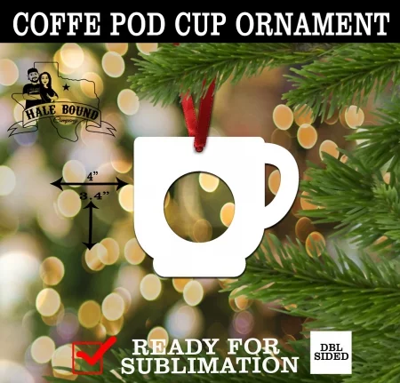 The COFFEE POD CUP MDF ORNAMENT with added personalization will compliment and Christmas tree. Any coffee pod brand will fit in this ornament. They are double sided and 1/8 thick. These ornaments will be great sellers this holiday season and most importantly be treasured by your customers for years to come!