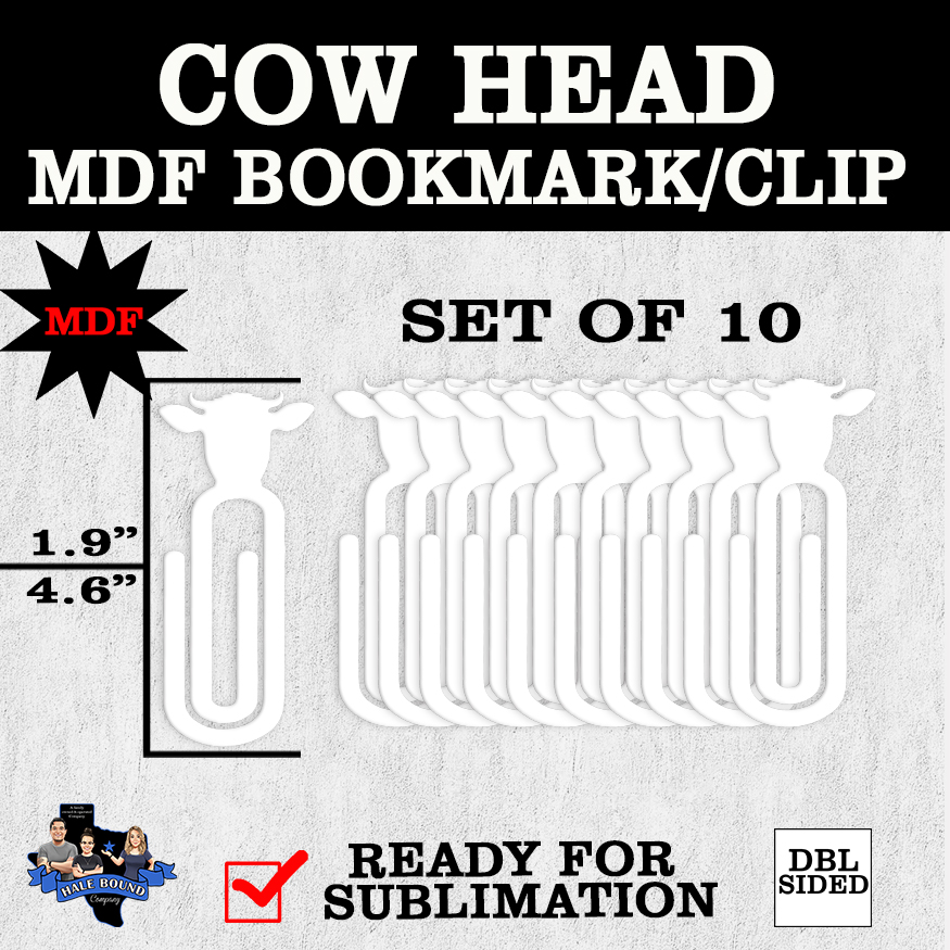 COW HEAD MDF BOOKMARK CLIP (BLANK FOR SUBLIMATION) – 10 PACK