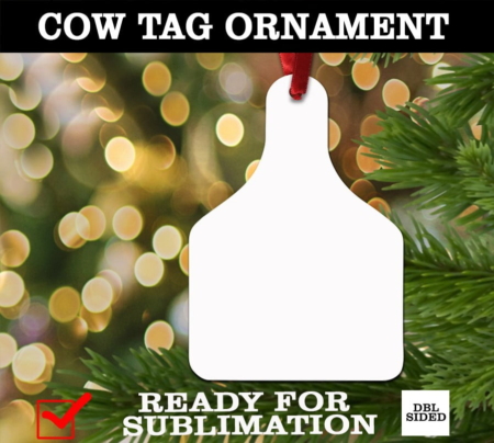 - Cow Tag Ornament – Size 4″ x 2.8″ Dbl Sided 1/8 thick.