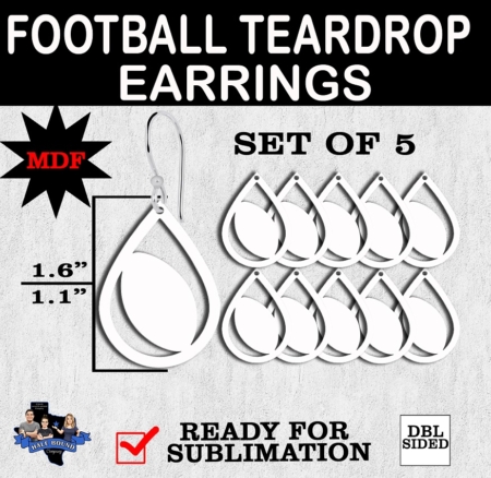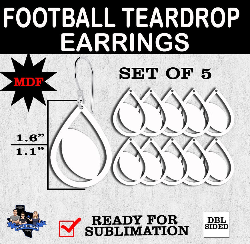 FOOTBALL TEARDROP MDF EARRINGS (SET OF 5) – BLANK FOR SUBLIMATION