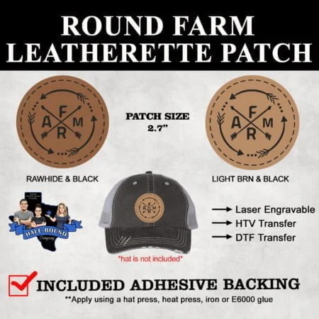 Our Laser cut Leatherette patches will open up a world of creative options! Our patches come with an adhesive backing that allows you to adhere them to hats, bags, etc. You can laser engrave your designs, or apply HTV or HTV transfers.