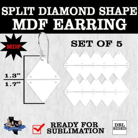 Our Split Diamond shape MDF earrings are made from medium-density fiberboard (MDF). The term “split” means that the earrings have two separate parts that can be joined together. These sublimation earring blanks are made of a glossy MDF finish that produces amazingly vibrant images and professional results with ease.