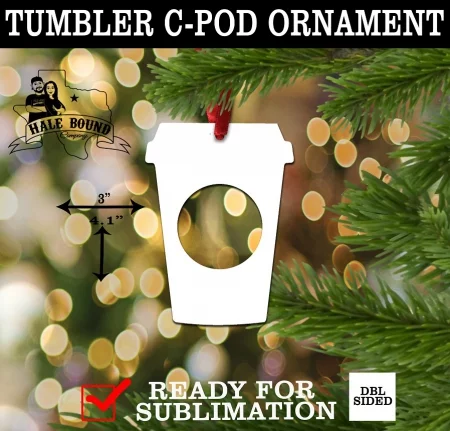 The TUMBLER C-POD MDF ORNAMENT with added personalization will compliment and Christmas tree. Any coffee brand brand will fit in this ornament. They are double sided and 1/8 thick. These ornaments will be great sellers this holiday season and most importantly be treasured by your customers for years to come!