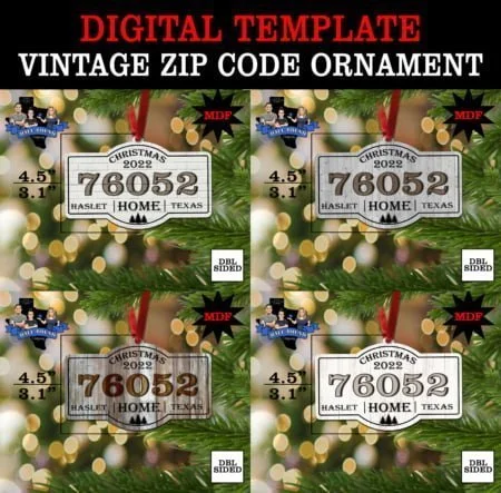 VINTAGE ZIP CODE ORNAMENT DIGITAL TEMPLATE